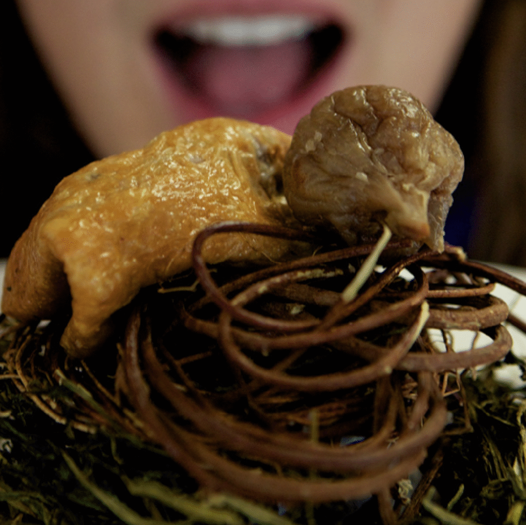 In the Mock Wild Picnic, we explored these questions through speculative recipes and outdoor tastings that imagine landscapes where rewilded ecosystems coexist with new food infrastructures. MVP × FFF similarly looked at emerging alternative protein industries and the narratives surrounding them, asking what kinds of futures they promise and who benefits from them. Rather than treating high-efficiency alternative protein production as the opposite of regenerative agriculture projects like food forests, in these projects we imagined how these two approaches could form a hybridised system. Cooking with “hyperefficient proteins” and food forest produce became part of a creative research process: by turning them into dishes, picnics, and public tastings, we can explore how technological food production might fit with other ecological strategies. In this sense, the culinary experience becomes a tool for debating how land, energy, and biodiversity might be reorganised in future food systems.