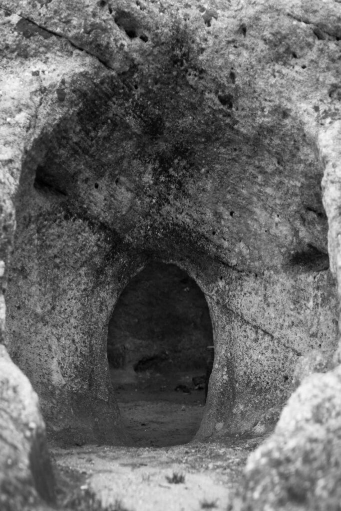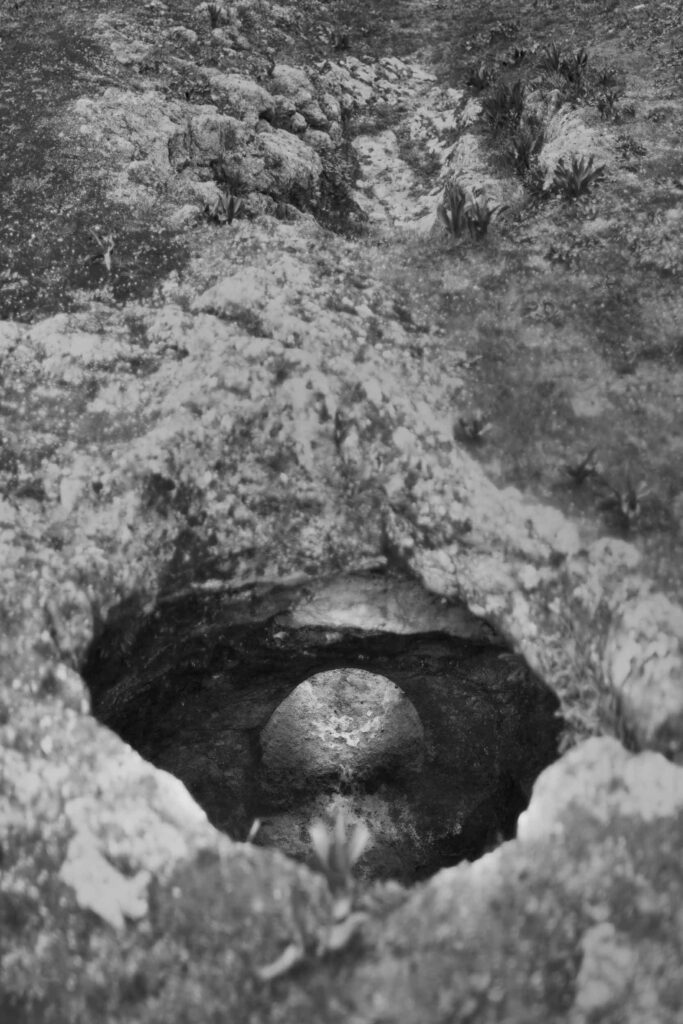 Following a strategy of time travel, I continue my journey into the labyrinths of the past. In the Buracas do Casmilo, created during the Last Glacial Period through frost-wedging and other processes, I imagine shelters once used by herders of goats and sheep. The wind carries legends of buried Moorish gold, whispering through the mountain cavities—landscape and myth share a long-lasting dialogue. A sublime aspect of form and void frutifies the devotion to the inner world.