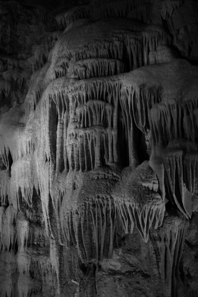 As I move through these geological layers, I arrive at the Caves of Mira de Aire, formed in the Middle Jurassic. Here, beautiful lagoons, sculpted by water through limestone dissolution, shimmer like portals to another world. I like to believe that many rituals took place here—intimations of sacred communion in the depths of the Earth. Like a mirage, I uncover these hidden realms, following the luring chants of witches.