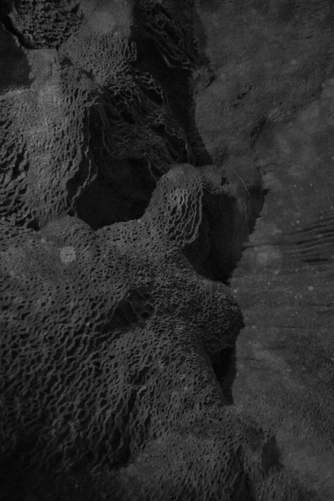 While focusing on analogies between the human psyche and geological matter, I find solace in understanding the chimeras that appear in our dreams, revealed through the cartography of the caves. The pathways they show us help us understand and connect to our deep psychic life, to our deepest traumas and fears.